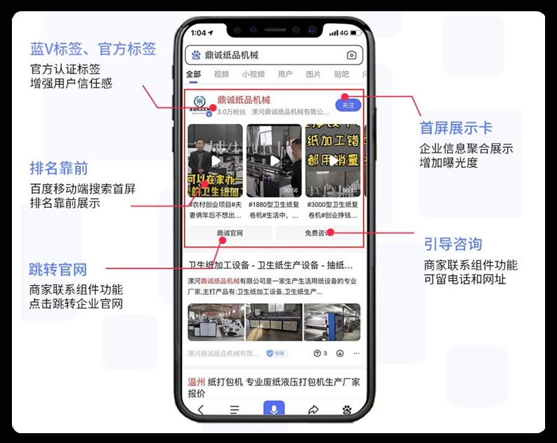 企业百家号,是百度专为企业打造的,集品牌内容生产发布、用户运营沟通、销售转化促进为一体的私域运营新阵地。百度企业号权威认证是百度对于优质品牌企业的认证,是企业内容获得在百度优先搜索及相关特权的前提。重点就是,优先搜索排名哦。